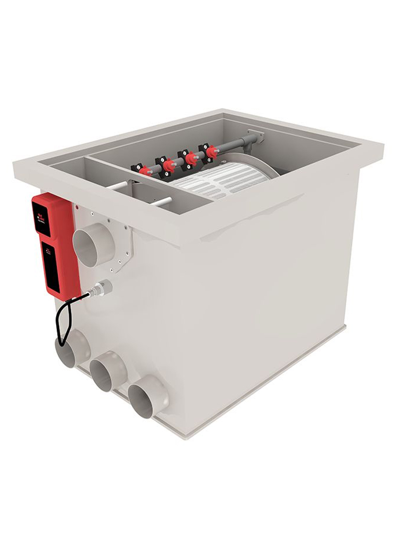 Zastosowany system podwójnych szczotek skutecznie utrzymuje rynnę odprowadzającą zanieczyszczenia w czystości. Dzięki temu filtr wymaga minimalnej obsługi i jest praktycznie bezobsługowy w codziennym użytkowaniu.